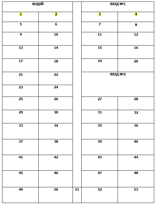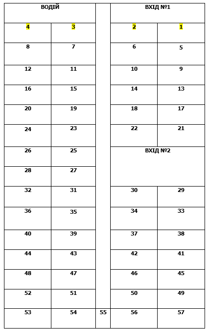 *Пріоритет-місця 2-3 ряди – доплата +500 грн на людину в 1 бік.
