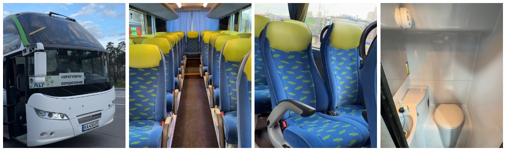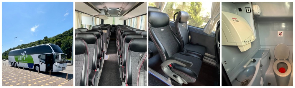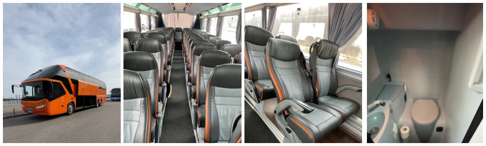 5) В автобусах всього 49 місць, 14 або 16 з яких “Comfort”. Місця “Comfort” відрізняються від решти відстанню між сидіннями і трансформуються майже в горизонтальне положення для максимальної зручності.